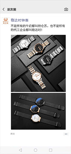 不同材質(zhì),不同工藝,不同質(zhì)量的原材,價格最后都不一樣;穩(wěn)達時每只表精細(xì)選材,原裝進口機芯品質(zhì)保證,先打樣后做貨、保障產(chǎn)品品質(zhì);我們始終堅信一分錢一分貨,從源頭把控產(chǎn)高品質(zhì),確保打磨出來的每一只表都是精品。